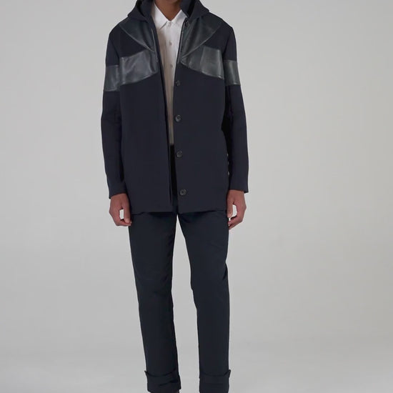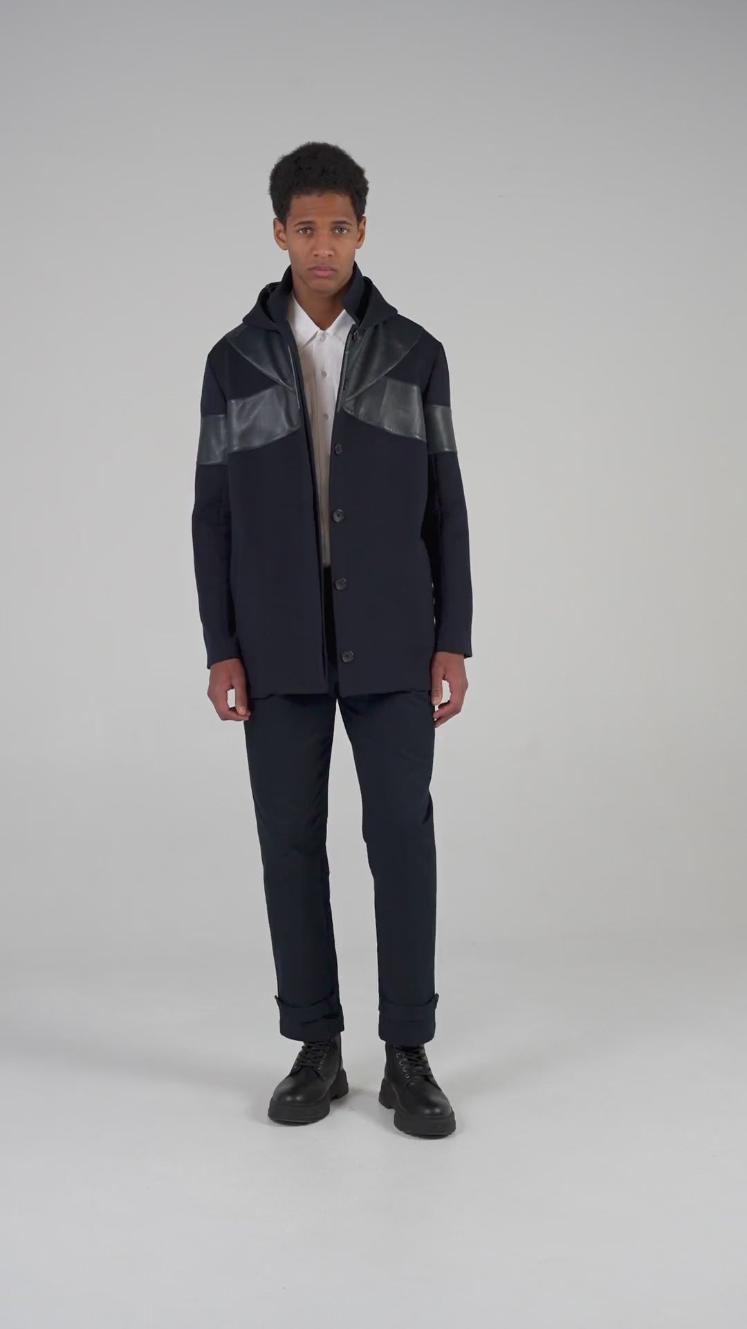 Le manteau Alphajet est une fusion de laine cachemire et de cuir.